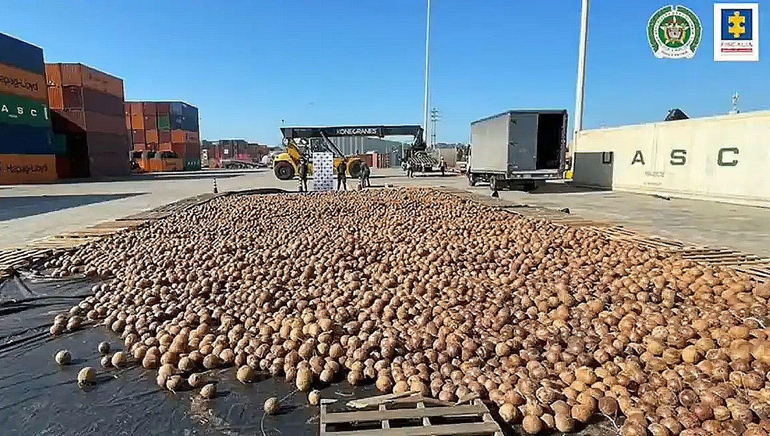 En un contenedor que estaba listo para ser embarcado en el puerto de Cartagena (Bolívar) con rumbo a Génova (Italia), el personal antinarcóticos encontró 504 sacos de lona que contenían 20 mil cocos de tipo exportación.