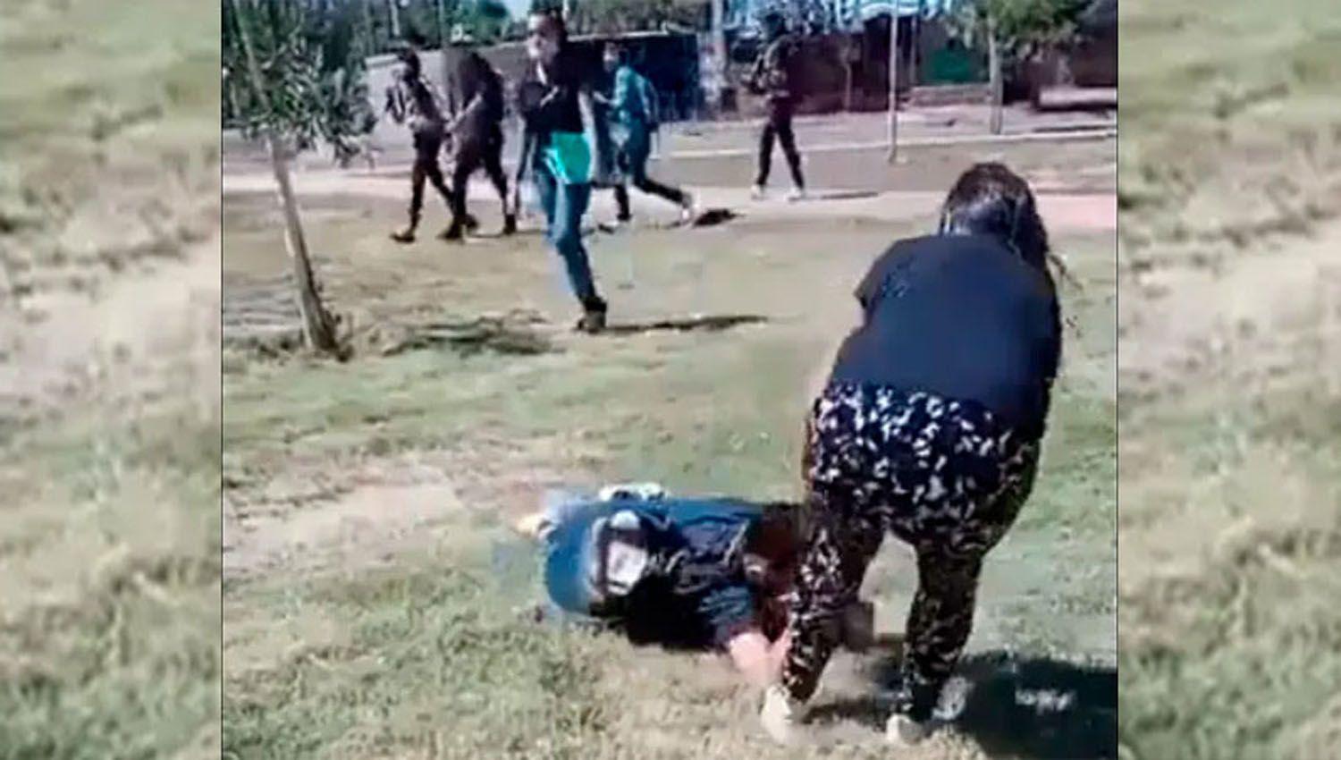 Las imágenes son impactantes. Se puede observar cómo la agresora le da una serie de golpes a la otra joven hasta dejarla sin reacción y tendida en el piso.