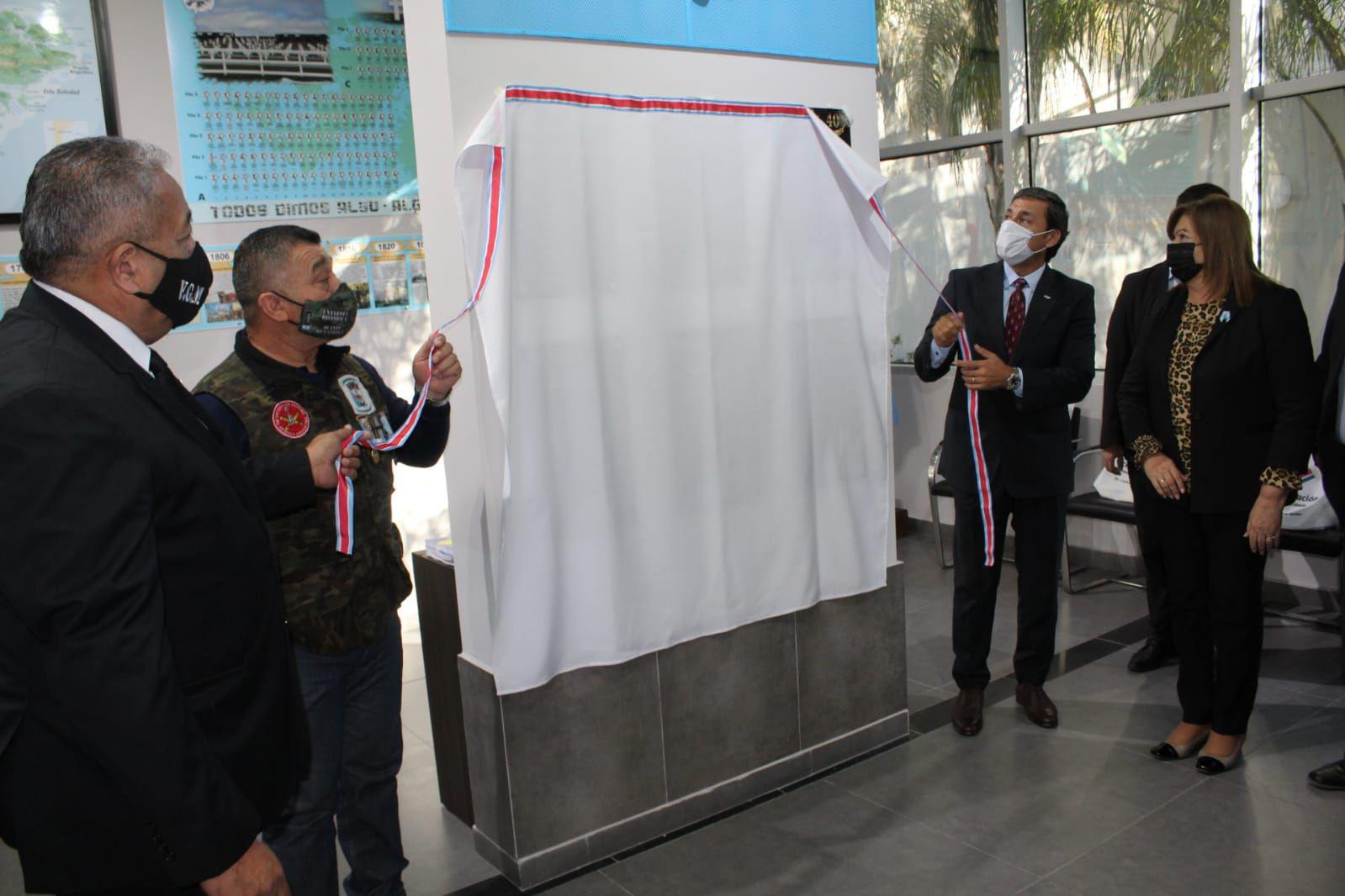 Luego, acompañados por integrantes de la Comisión Agenda Malvinas de la Legislatura Provincial; veteranos de Malvinas y diputados y diputadas provinciales y nacionales, descubrieron placas recordatorias en homenaje a los caídos en la Guerra de Malvinas, a los héroes fallecidos y a los excombatientes presentes en el acto.