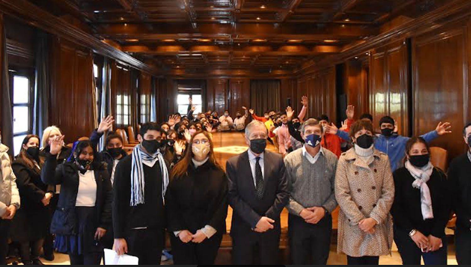 El encuentro se llevó a cabo en el Salón de Acuerdos de Casa de Gobierno, donde los alumnos estuvieron acompañados por el titular del programa, Silvio Villalba, y los docentes a cargo.