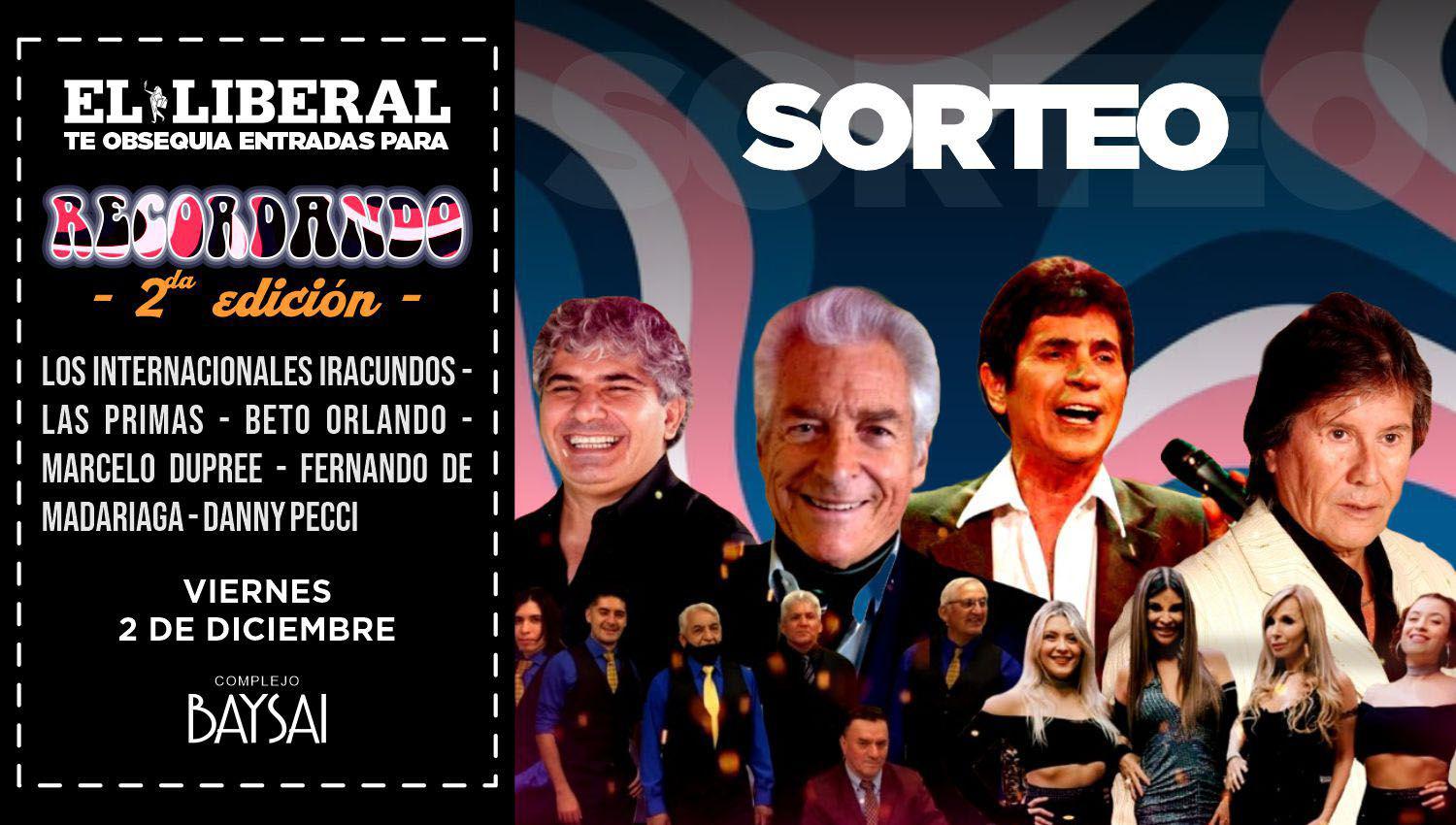 EL LIBERAL sortea entradas para que puedas disfrutar del show "Recordando" 2da. Edición, que se llevará a cabo el próximo viernes 2 de diciembre en Complejo BAYSAI.