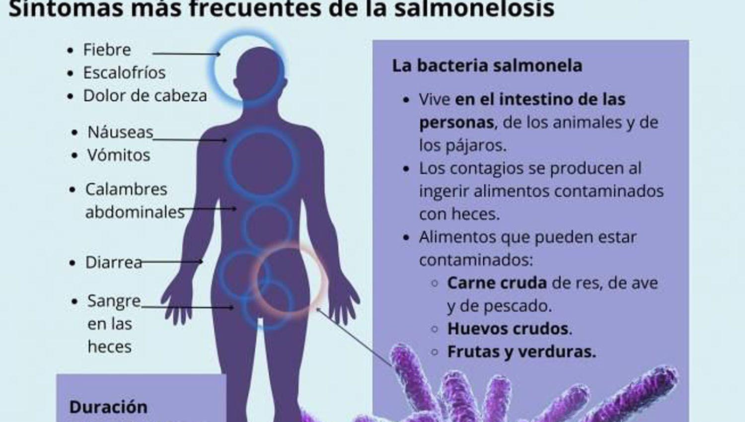 La salmonelosis es una enfermedad transmitida por alimentos causada por bacterias del género Salmonella, que suele vivir en los intestinos de animales y humanos, y se liberan mediante las heces.