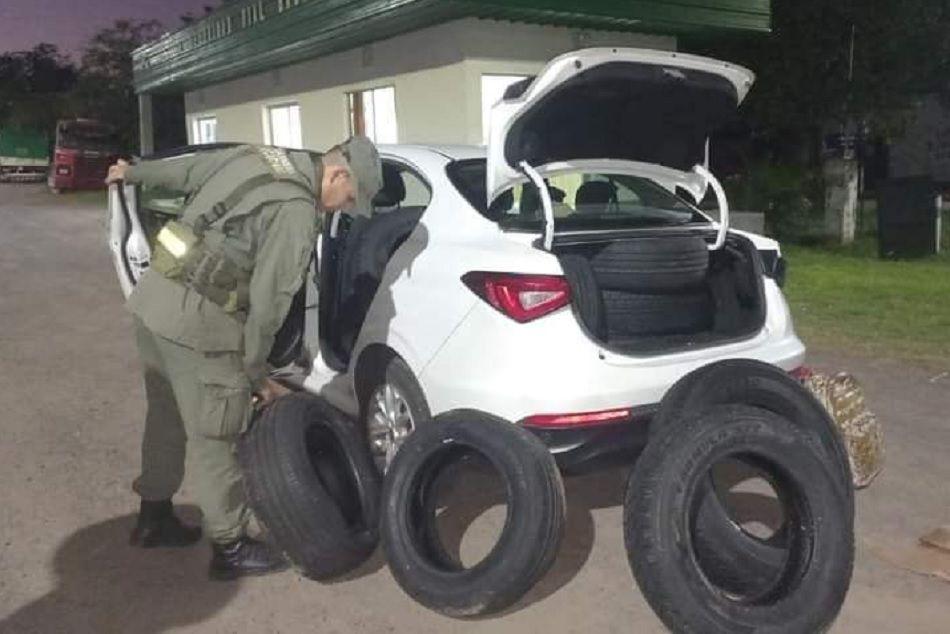 Al revisar el vehículo encontraron 12 cubiertas para automóviles, con un costo aproximado de $844.000 pesos, pero sin el aval aduanero correspondiente de ingreso al país.