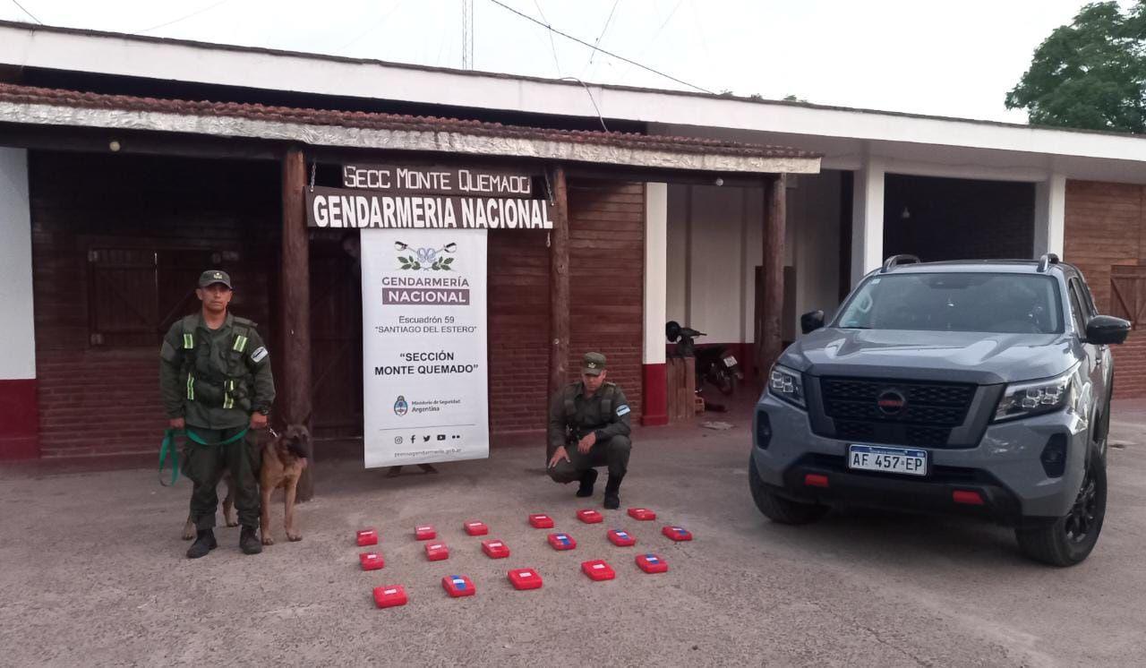 Gendarmería detuvo en Monte Quemado a dos hombres que llevaban más de 18 kilos de cocaína escondidos en su camioneta