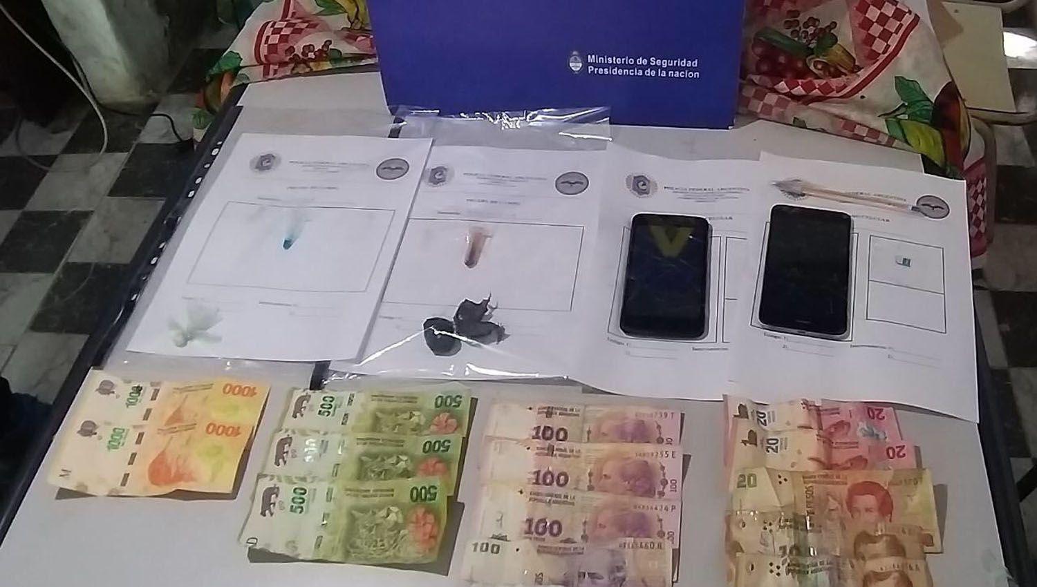 Los efectivos secuestraron cocaína y marihuana fraccionada, lista para ser comercializada, además de elementos de corte y estiramiento, dinero en efectivo, celulares y motovehículos.