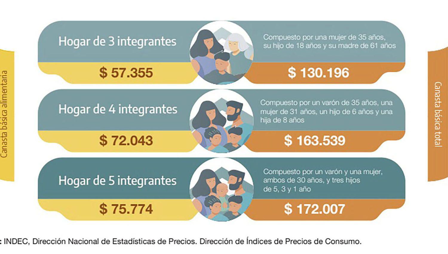 En tanto, para determinar la canasta básica total (CBT) se amplía la canasta básica alimentaria incluyendo en la medición bienes y servicios no alimentarios, entre los que se encuentran el costo del transporte y de electricidad y gas, entre otros.