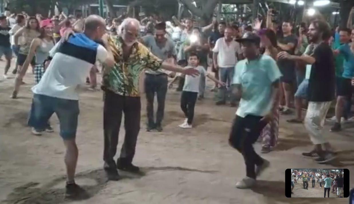 En las imágenes se puede ver al joven Diego Ibañez, reconocido en la provincia por ser un ejemplo de superación por sobre su discapacidad, quien estaría siendo "apartado" del círculo de baile que habían formado un grupo de personas en el emblemático patio.