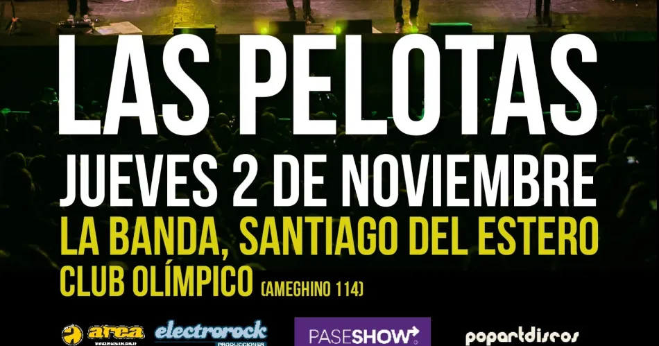 Las Pelotas se presentarán en la ciudad de La Banda, el próximo jueves 2 de noviembre. El lugar del show será el Club Olímpico, ubicado en Ameghino 114.