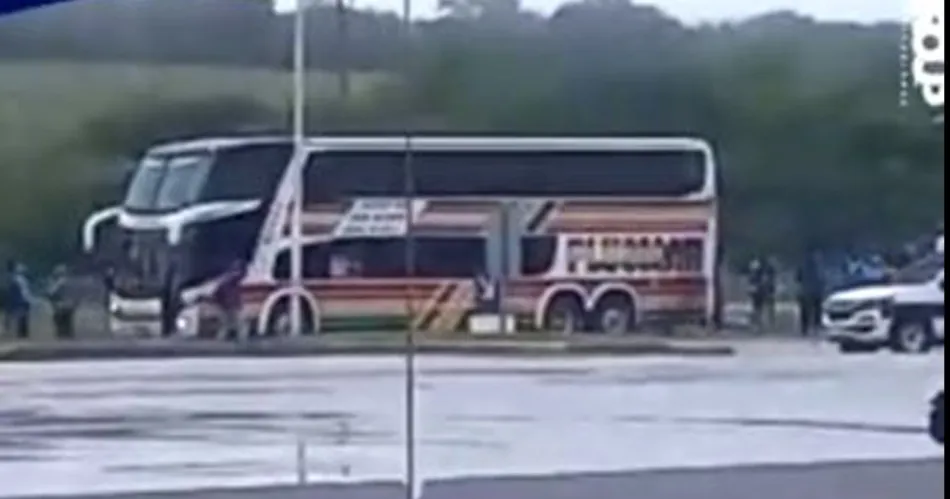 El video llega a tomar algunos movimientos de los hinchas, los colectivos parados a un costado de la ruta y algunos patrulleros. También se escucharon algunas detonaciones de armas de fuego.