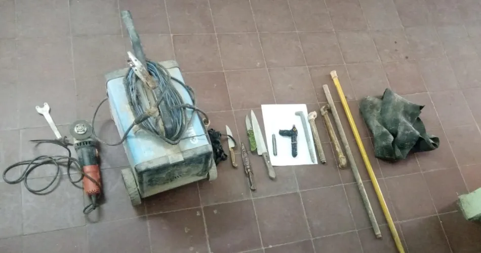 En las requisas, los policías lograron la detención de un joven de 22 años y el secuestro de dos "tumberas", cuchillos y elementos para fabricar armas de fuego, como caños de 1/2 pulgada amarillo, retazos de gomas, soldadora y amoladora de un domicilio.