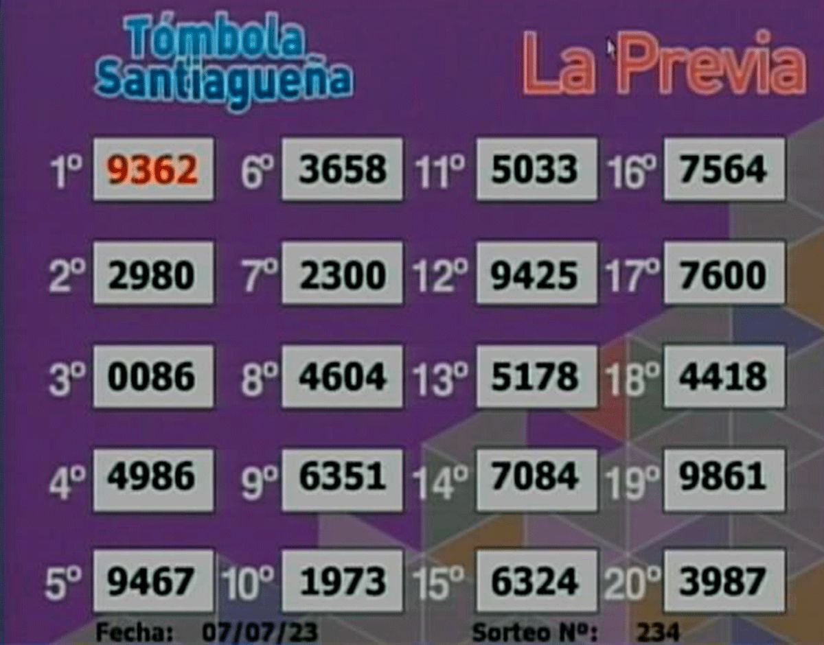 Tómbola Santiagueña: los números de este viernes 7 de julio de 2023 Tómbola Santiagueña: los números de este viernes 7 de julio de 2023